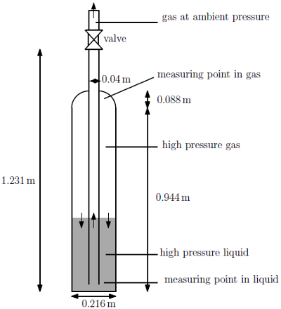 Schematic sketch of the gas cylinder geometry for experiment and CFD (initial conditions)
