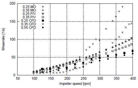 Comparison of the shearrate measured, non-Newtonian fluids