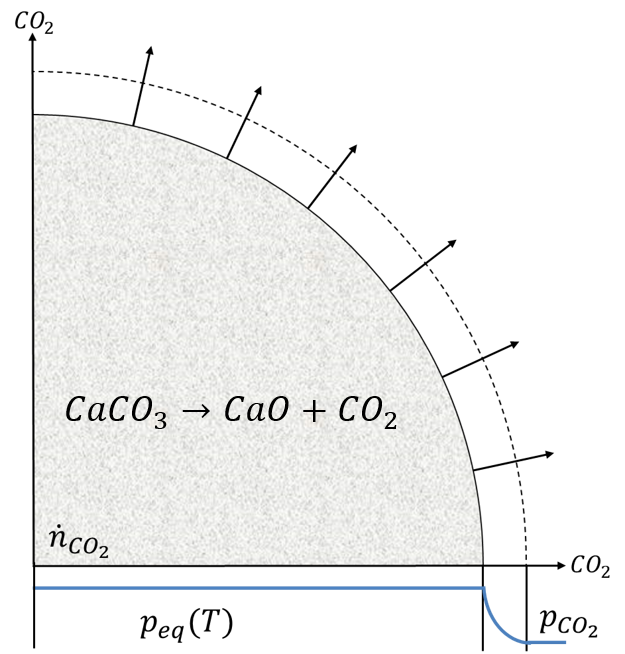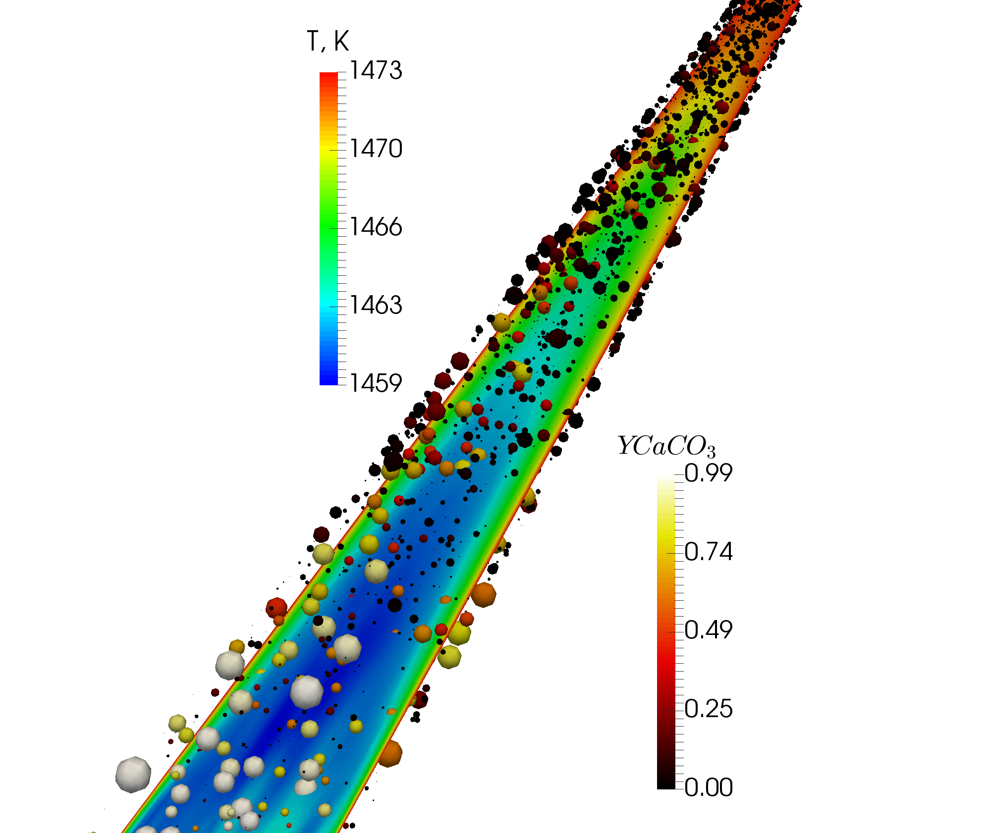 This emissions could be reduced, if the applied amount of fuel is minimized. To minimize energy consumption while keeping the desired conversion of CaCO3, a detailed process analysis is needed. Computational fluid dynamics (CFD) is a viable tool to get better insight in phenomena in complex flows. Even though computers have become more powerful very rapidly in recent years, it is of interest to keep simulation time short to be able to perform optimisation in reasonable time. A simple reaction and diffusion limited calcination model, based on the porous particle approach, was developed and implemented in the open source CFD-software OpenFOAM®.