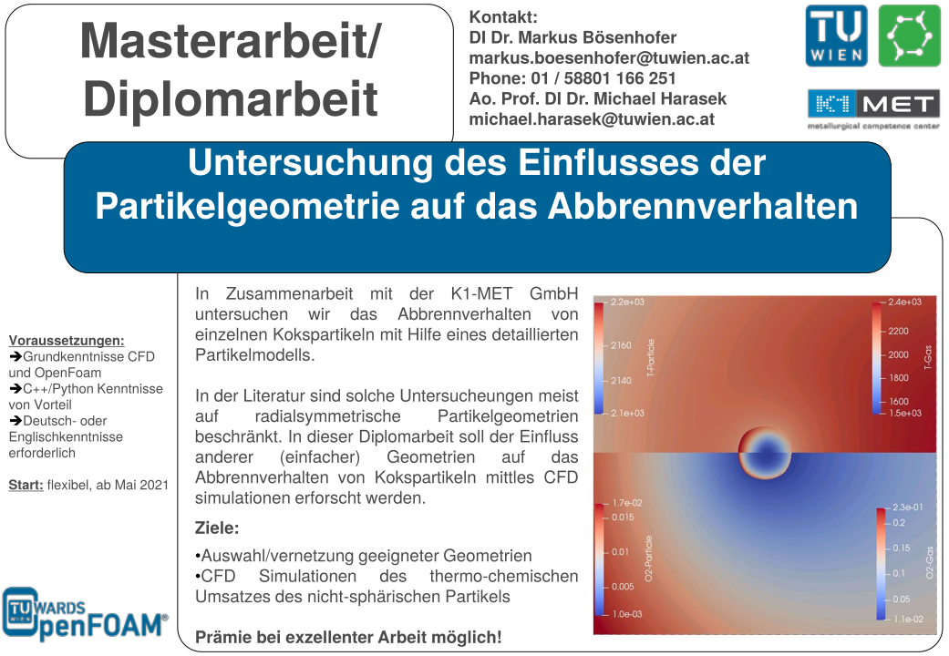 Computational fluid dynamics (CFD) is a versatile tool. Not only can large-scale processes be investigated, but it is also possible to depict processes on the single-particle scale. In cooperation with K1-MET GmbH we explore the conversion behavior of individual char particles. The scales for these particles are in the range of multiple micrometers up to a few centimeters. This investigation is based on a detailed particle model, which resolves not only the flow field around the particle but also the processes inside the particle. This detailed particle model was implemented in the CFD toolbox OpenFOAM.